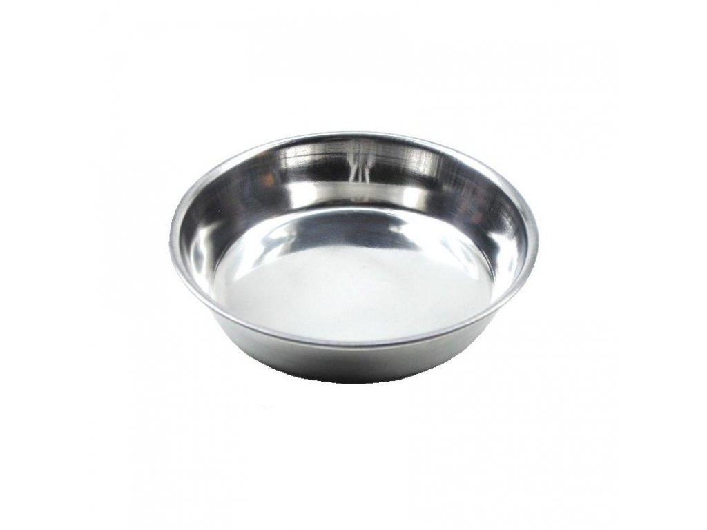 Nerezová miska pro kočku, nízká a široká. Vhodná na mokré i suché krmení. Materiál: nerez.