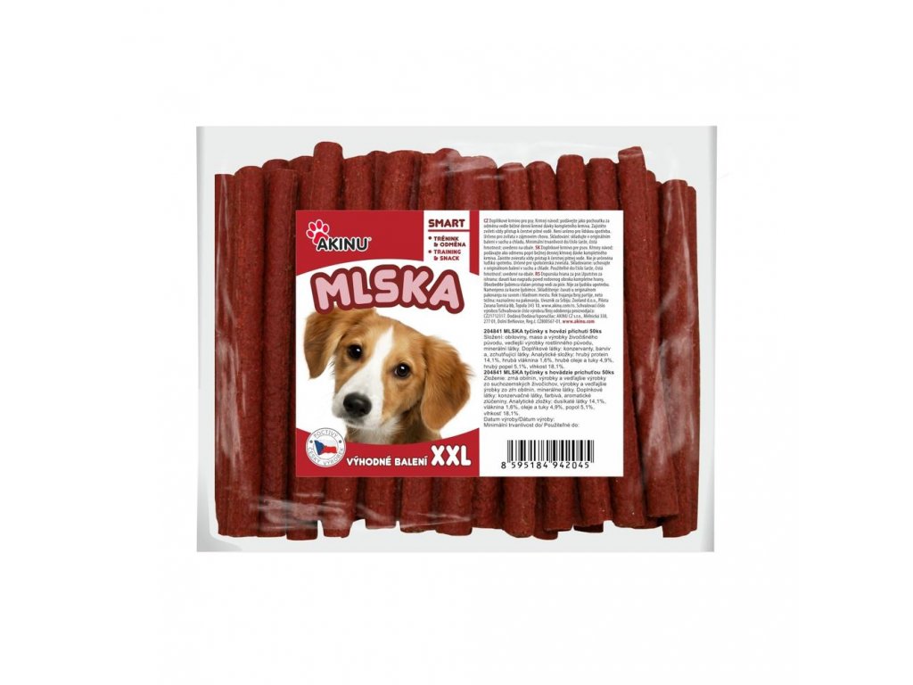 MLSKA tyčinky s hovězí příchutí 12,5cm v chovatelském, XXL balení 50ks. Oblíbené tyčinky jsou vhodné pro výcvik i odměnu.