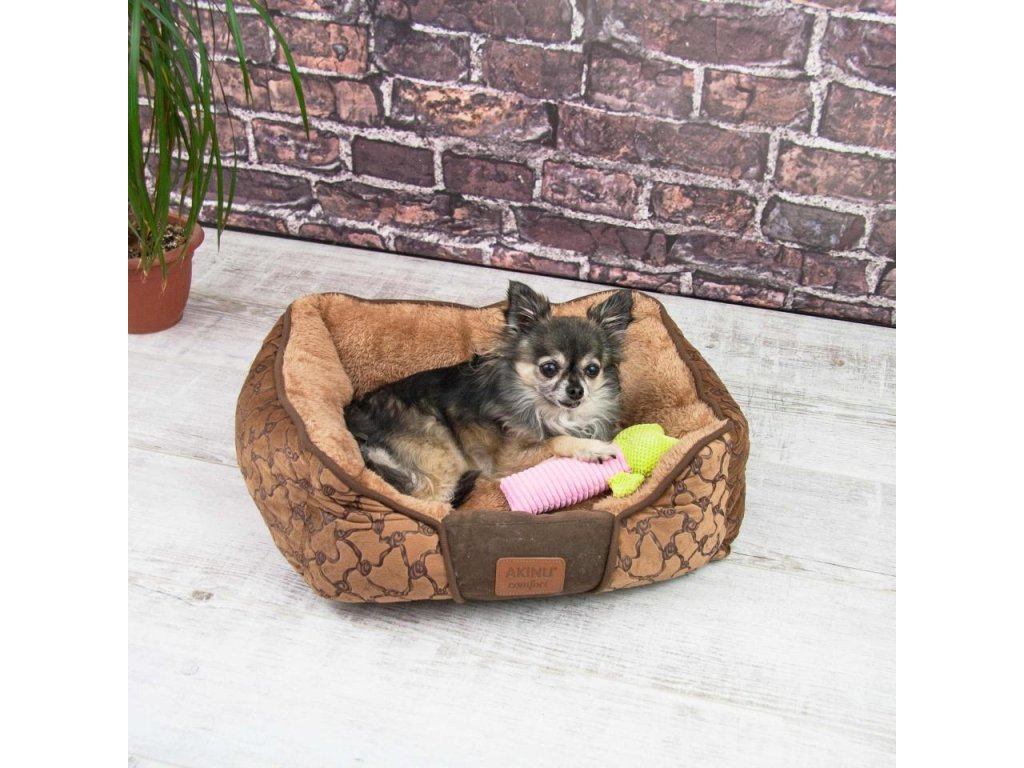 Akinu Pelech GOLD 4hran. XS-47x37x17 má vnitřní polštář, který je obsoutranný. Z jedné strany je reliéfní vzor a z druhé strany měkounký plyš.