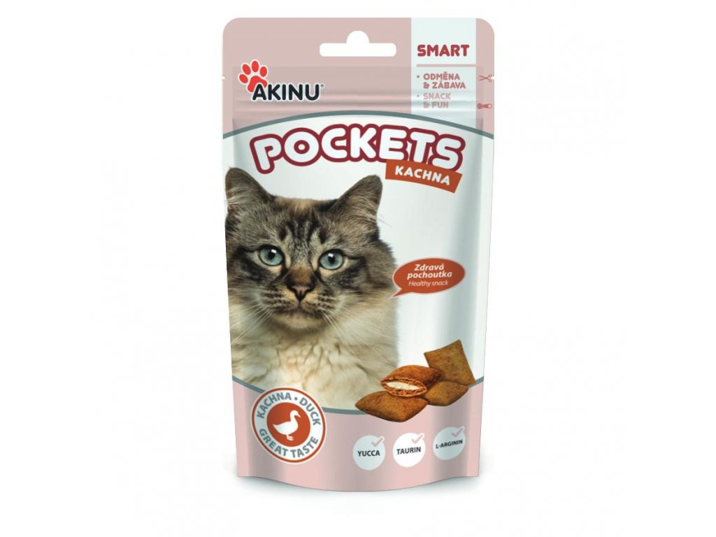 Akinu Pockets kachní polštářky pro kočky 40g jsou ty pravé křupavé pamlsky pro vašeho mazlíčka.