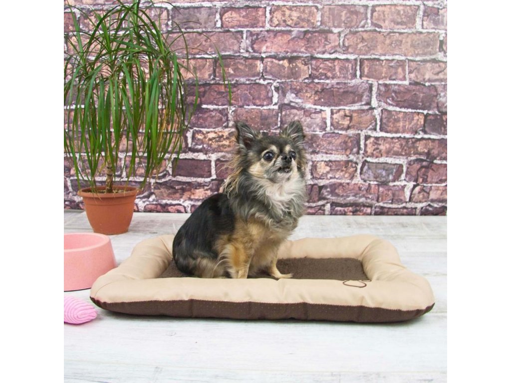 Akinu Poduška nylon&fleece 4hran. M 70x47cm béžová/hnědá s tlapkou je bezva místečko pro vašeho pejska, který si tam může hrát i odpočívat.