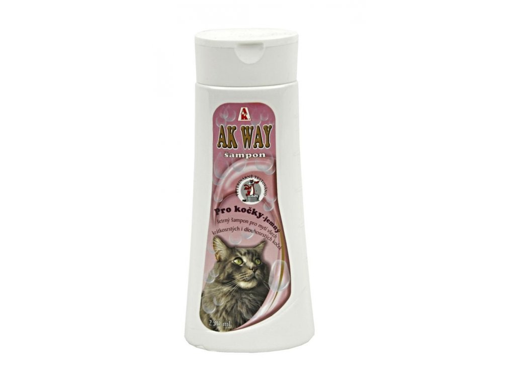 Chcete mít doma ´´výstavní´´ kočičku? I srst musí mít dokonalou barvu, kresbu či znaky, musí být jemná či plyšová, s hedvábnou texturou nebo velmi krátká a přiléhající k tělu, lesklá nebo jiskrná. Velmi šetrný šampon AK pro mytí koček je skvělým řešením. Koupat kočku by jsme měli 2-4x ročně. Častější koupání zbavuje srst ochranného filmu a je tak náchylná ke vzniku ekzému jiných kožních onemocnění. Při koupání kočky musíme být vstřícní a být na kočku příjemní. Použití: Přiměřené množství šamponu naneste na důkladně navlhčenou srst a krouživýmí pohyby vmasírujte do srsti. Nechte chvíli působit a poté důkladně opláchněte vodou. Dávejte pozor aby se kočce nedostala voda do uší ani do očí. Osušení kočky musí být rychlé a důkladné. Použijte savý ručník a pokud to kočička snese tak i fén. Kartáčování provádějte až po úplném vysušení srsti. Upozornění: Zabraňte kontaktu s očima. Uchovávejte mimo dosah dětí.