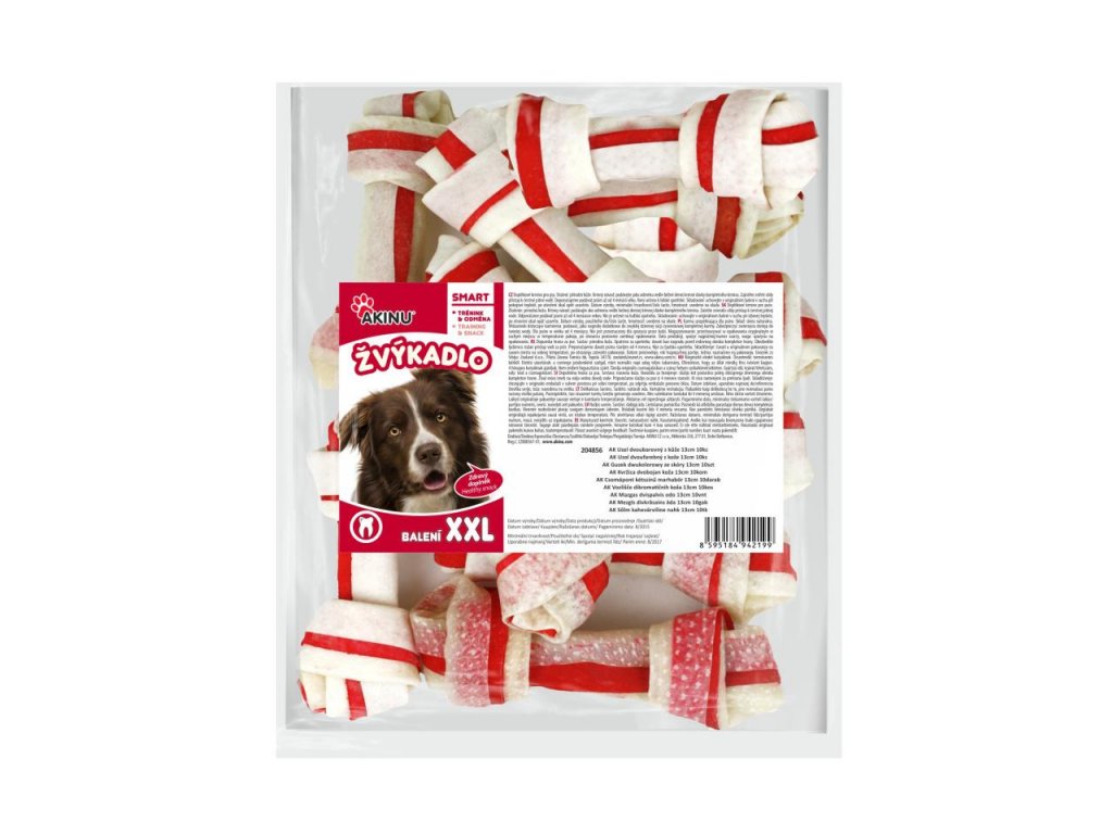 Akinu uzel dvoubarevný z kůže 13cm je dobrou žvýkací pochoutkou pro posílení žvýkacích svalů.