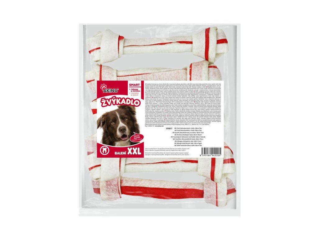 Akinu uzel dvoubarevný z kůže 18cm je dobrou žvýkací pochoutkou pro posílení žvýkacích svalů.