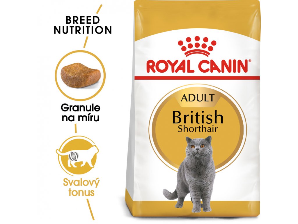 Royal Canin British Shorthair Adult je kompletní superprémiové krmivo pro dospělé britské krátkosrsté kočky starší 12 měsíců.