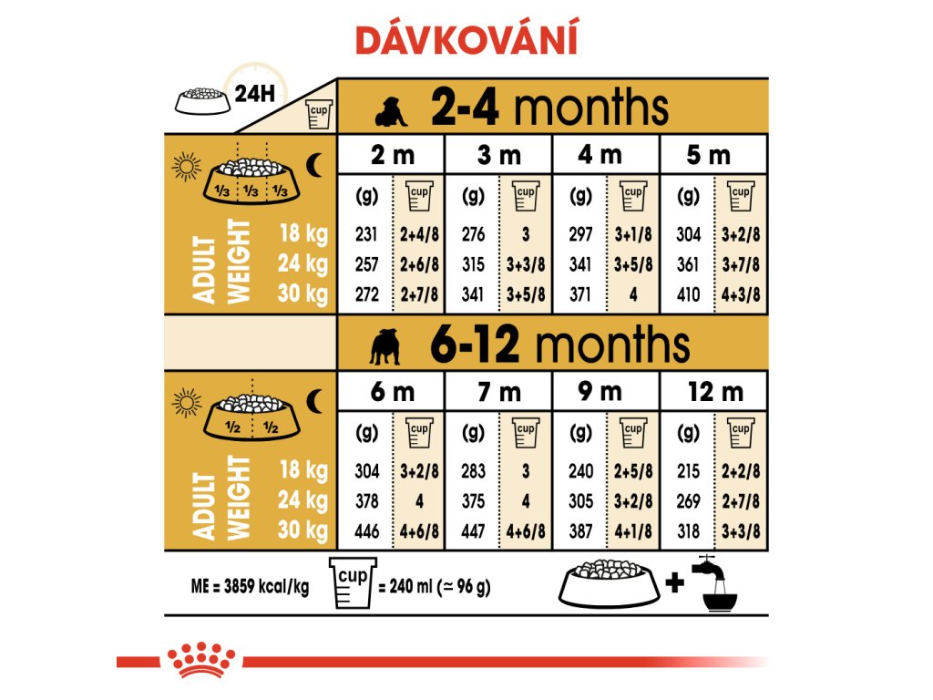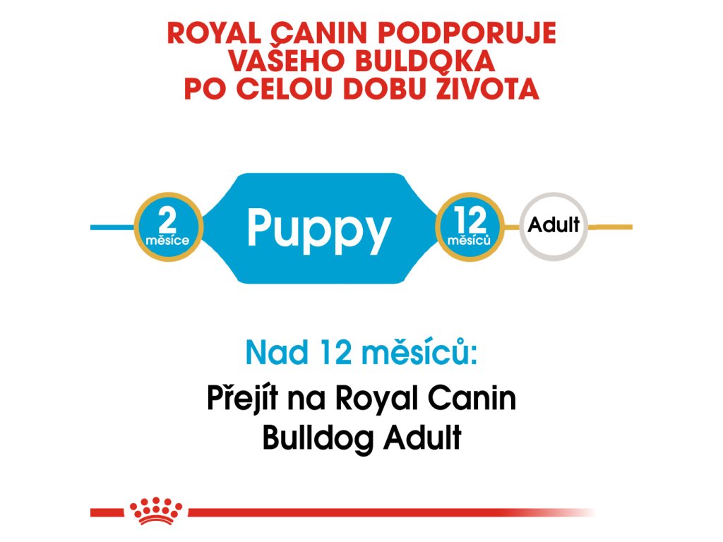 Růst je pro vaše štěně buldoka důležitým obdobím. Je to čas nových objevů, seznámení a fyzických proměn. Je nezbytné podávat vašemu štěněti během růstu krmivo obsahující živiny, které podporují jeho zdraví. Složení krmiva ROYAL CANIN® Bulldog Puppy je vytvořeno tak, aby uspokojovalo veškeré nutriční potřeby štěňat plemene buldok mladších 12 měsíců.