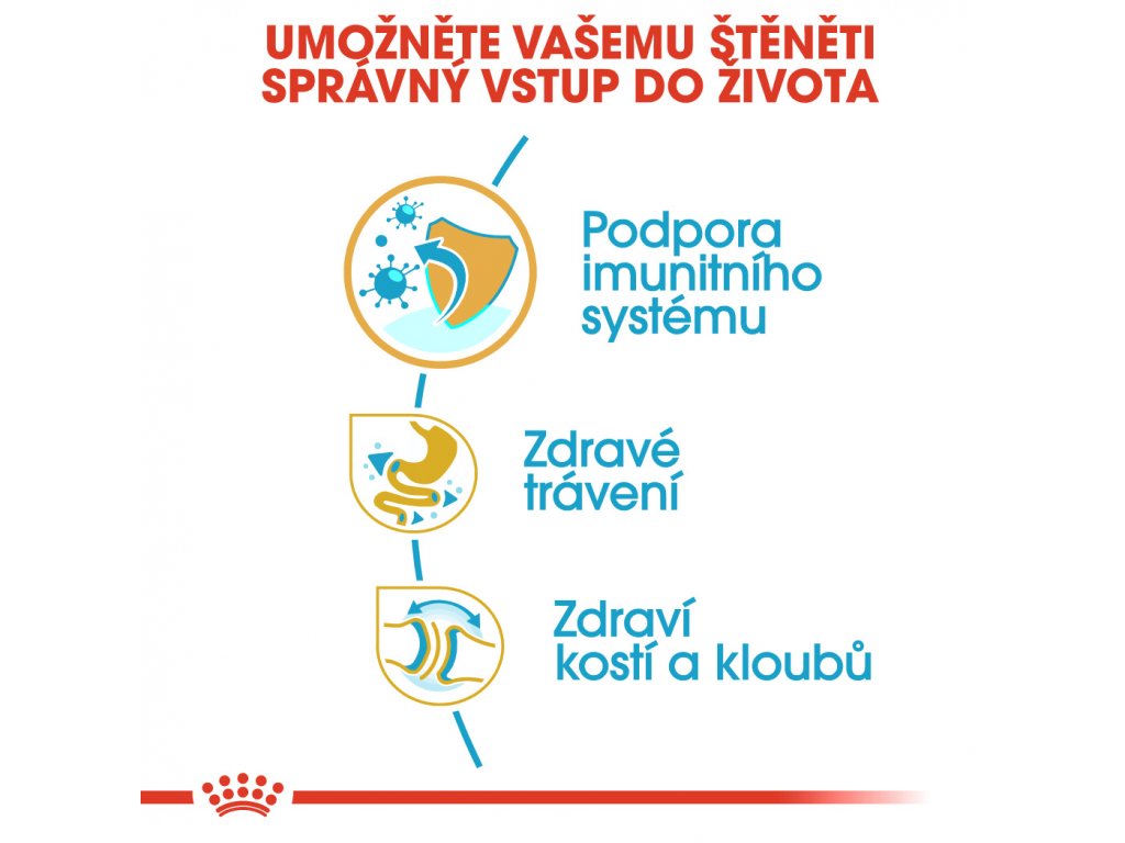 Díky patentovanému komplexu antioxidantů (včetně vitamínu E) podporuje přirozenou obranyschopnost vašeho štěněte, když se jeho imunitní systém ještě vyvíjí. Krmivo ROYAL CANIN® Bulldog Puppy obsahuje kombinaci živin s velmi kvalitními bílkovinami (označovanými anglickou zkratkou L.I.P.) vybranými díky své vysoké stravitelnosti, aby podporovalo zdravé trávení vašeho štěněte. Toto složení také podporuje rovnováhu střevní mikroflóry, která vede ke kvalitní stolici. Díky upravenému obsahu vápníku a fosforu krmivo také vyživuje kosti a klouby vašeho štěněte. Pečlivě vytvořená rovnováha živin udržuje u vašeho štěněte ideální váhu.