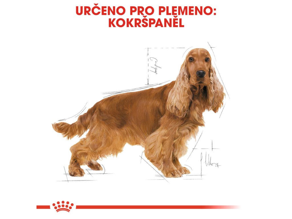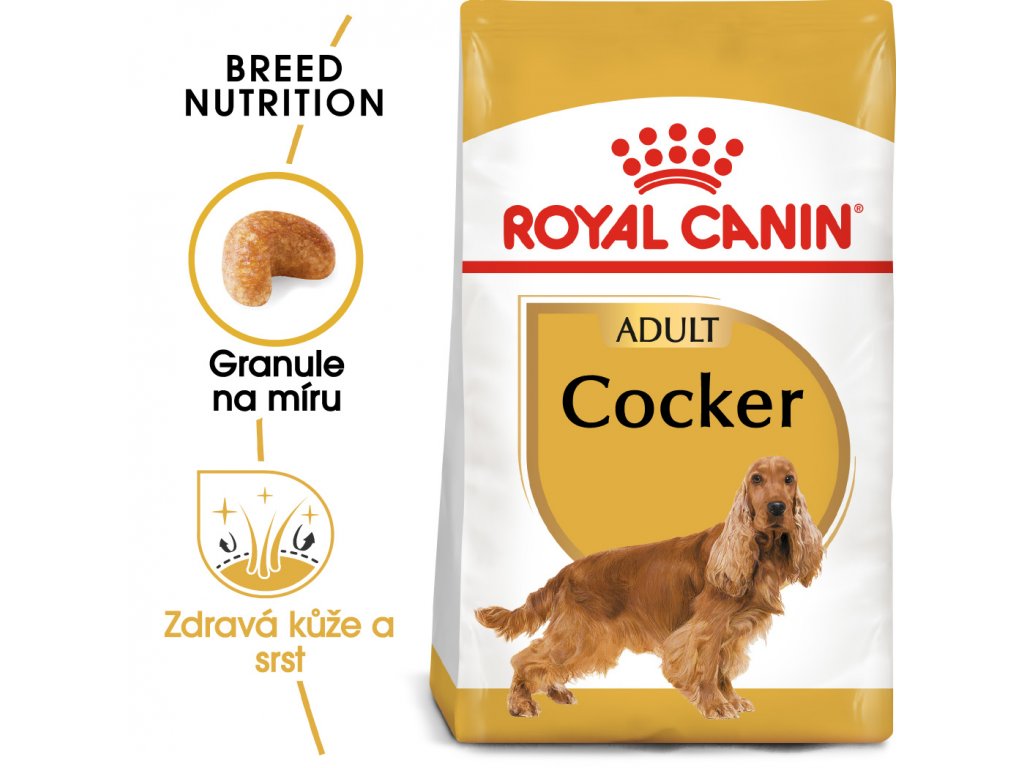 Royal Canin Cocker Adult je kompletní super prémiové krmivo pro dospělé (od 12 měsíců věku) čistokrevné plemeno Kokršpaněl.