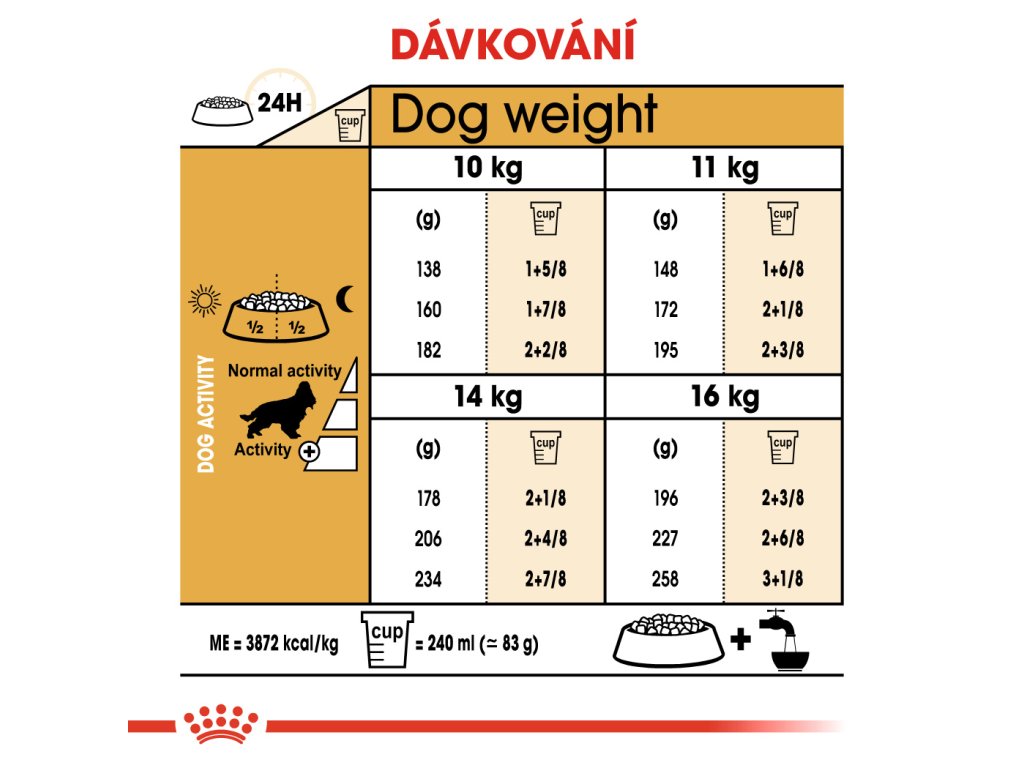 Pro vašeho kokršpaněla je výživa zásadní součástí zdraví. Je důležité podávat vašemu psovi kompletní a vyváženou stravu, aby zůstal zdravý. Složení krmiva ROYAL CANIN® Cocker Adult je vytvořeno tak, aby uspokojovalo veškeré nutriční potřeby dospělých kokršpanělů starších 12 měsíců.