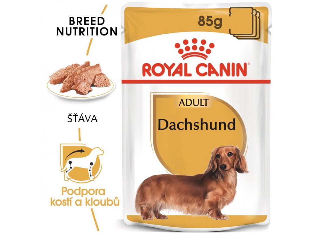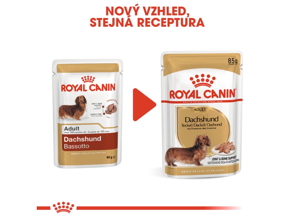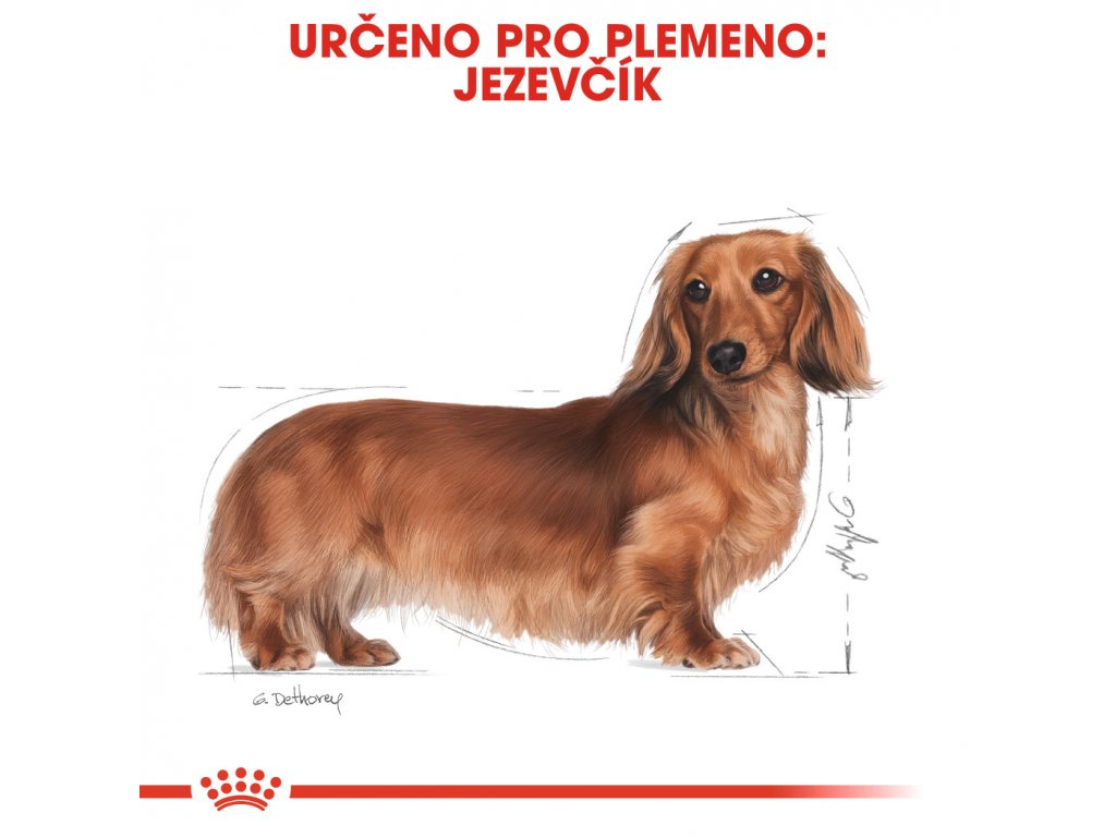 Krmivo ROYAL CANIN® Dachshund in Loaf je speciálně navrženo tak, aby udržovalo svalový tonus vašeho jezevčíka. Také podporuje zdraví kloubů a kostí. Dále má speciální strukturu, která zvyšuje jeho chutnost. Vašemu psovi bude chutnat i v případě, že má mlsný jazýček!