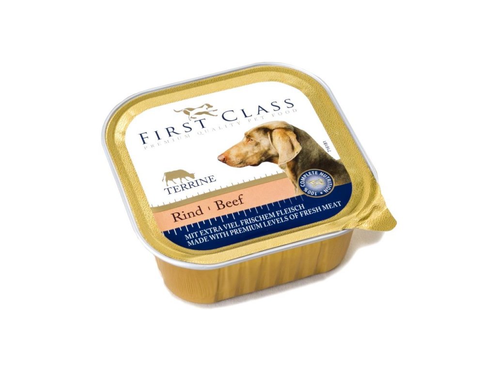 First Class paštika s hovězím 150g je kompletní krmivo pro dospělé psy všech plemen.