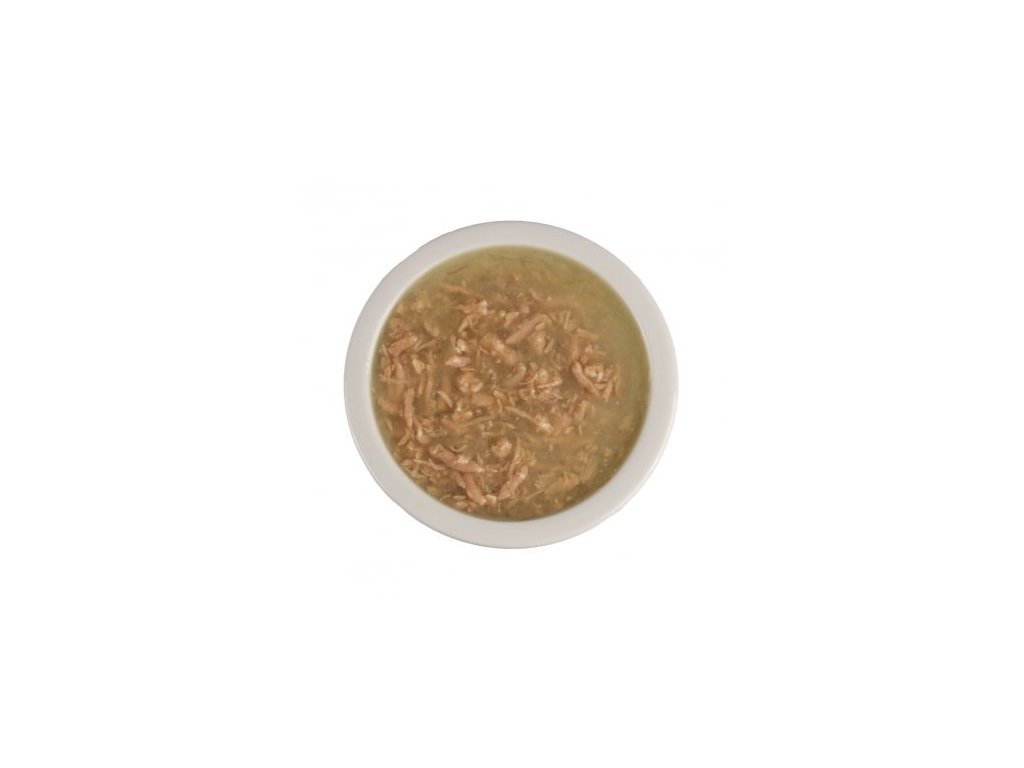Vývar 61,39 %, vepřové filetky 33 %, tapiokový škrob 2,7 %, lněný olej 1,9 %, minerály 1 %, 0,01 % šanta