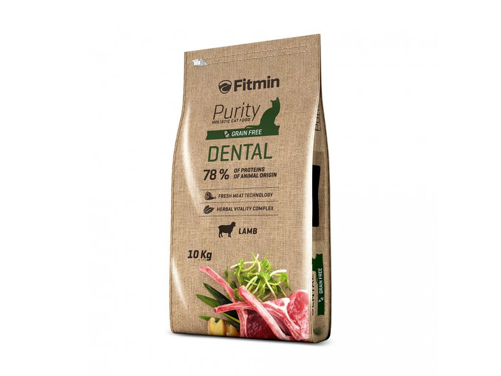 Kulinářský zážitek pro Vaši kočku. To je krmivo Fitmin cat Purity Dental. Najdete v něm bohaté zastoupení jehněčího masa, bylinky na podporu vitality organismu, ovoce i zeleninu. Nejenže uspokojíte mlsné jazýčky Vašich koček, ale zároveň jim poskytnete prvotřídní kvalitu Fitmin cat Purity Dental je tzv. Grainfree krmivo, to znamená, že je bezlepkové a snižuje potencionální riziko výskytu alergických reakcí (např. na pšeničný lepek a kukuřičný gluten). Krmivo je svým unikátním složením ideální pro kočky, které mají problémy s chrupem, či hygienou ústní dutiny. Díky němu bude chrup Vaší kočky ve vynikající kondici. Krmivo obsahuje bylinnou směs, která má mnoho blahodárných účinků. Krmiva jsou vyráběna nejmodernějšími technologiemi, jsou vyvážená, obsahují vysoký podíl živočišných složek a mnoho dalších benefitů zejména komplex dentální péče, prebiotika, cheláty a další.