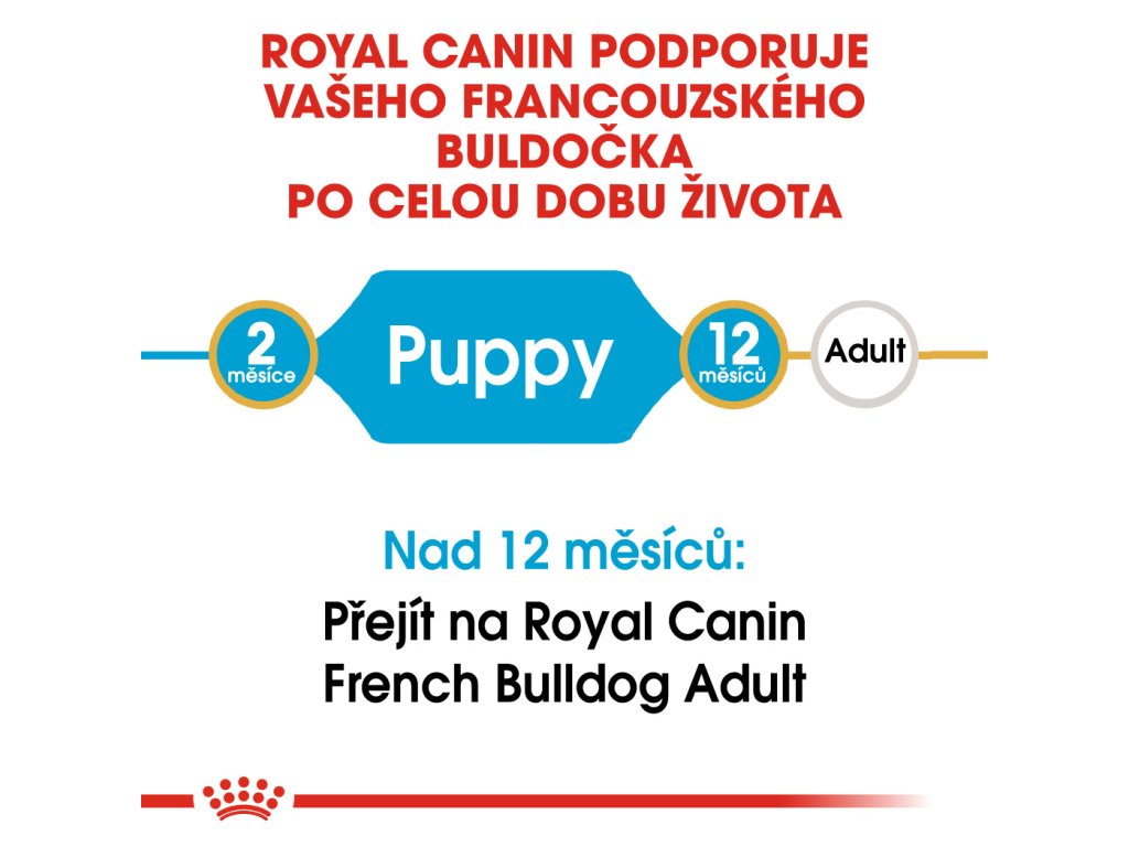 Royal Canin French Bulldog Puppy je kompletní super prémiové krmivo pro štěňata (do 12 měsíců věku) čistokrevného plemena Francouzský buldoček.