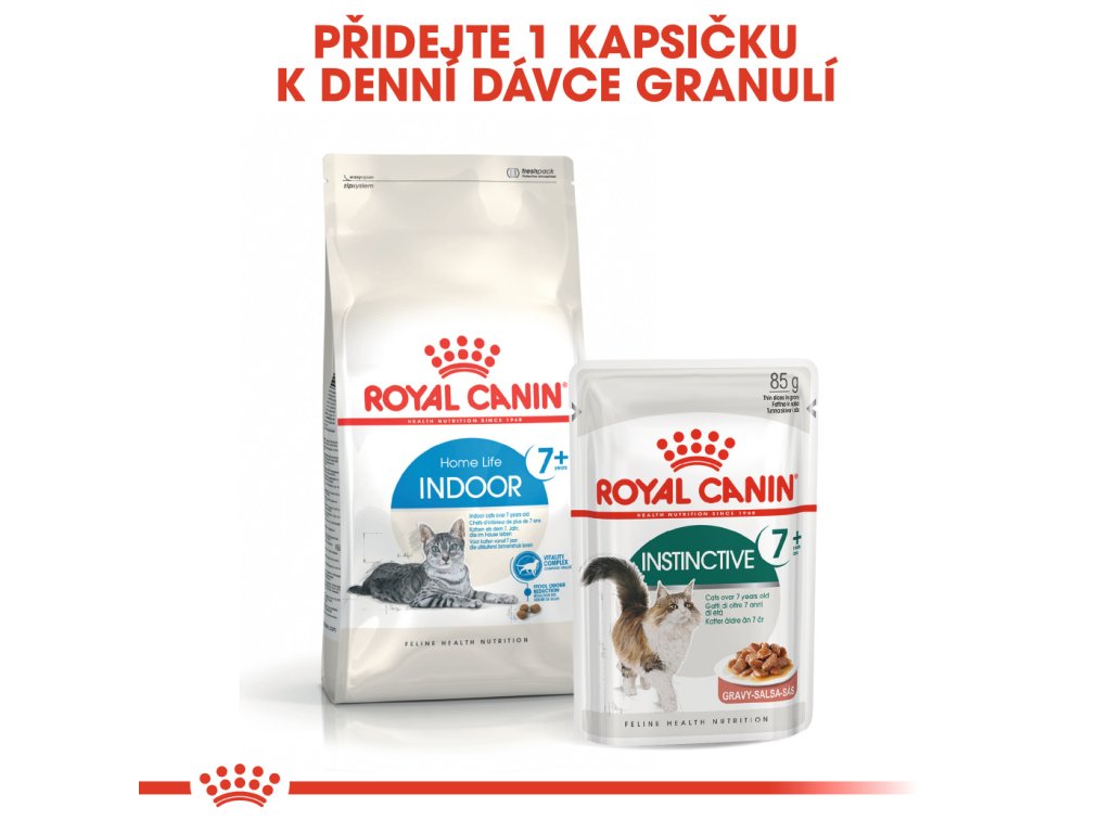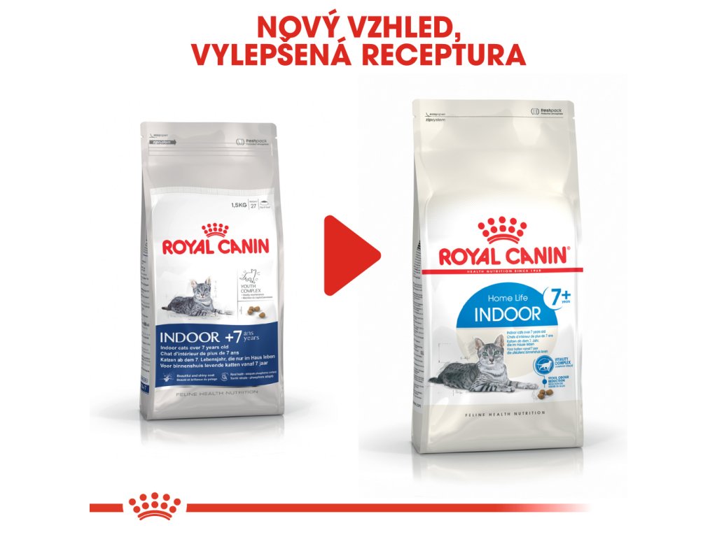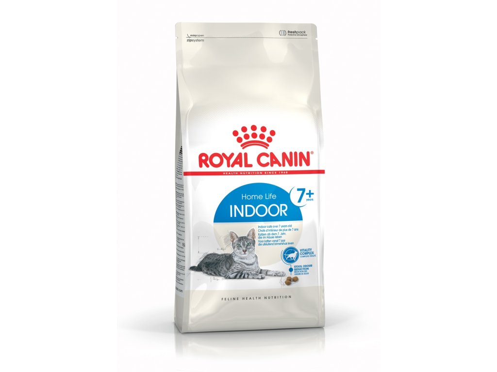 Royal Canin Indoor 7+ je kompletní superprémiové krmivo pro dospělé kočky (7 - 12 let) žijící v bytě.