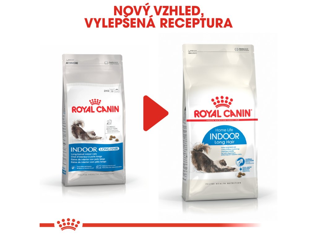 Royal Canin Indoor Long Hair je kompletní superprémiové krmivo pro dospělé dlouhosrsté kočky (1 - 7 let) žijící v bytě.