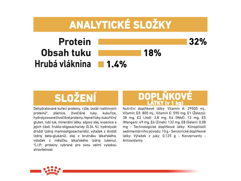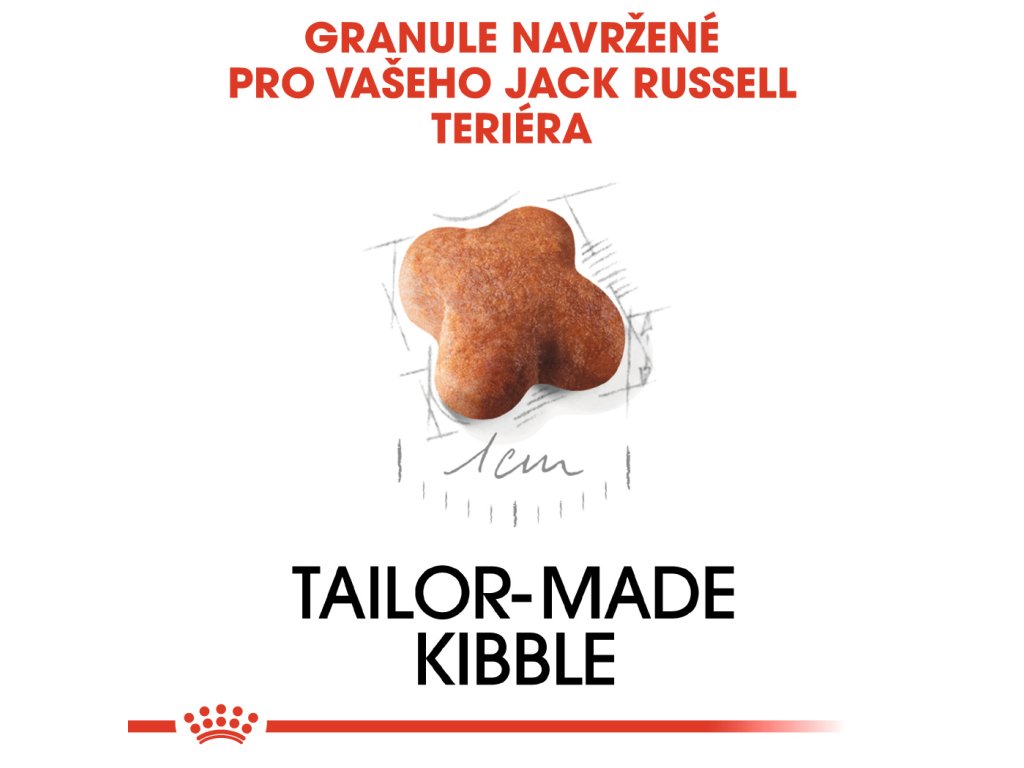 Kompletní krmivo Jack Russell Terrier, navržené přímo na míru tomuto aktivnímu plemeni, se vyznačuje speciální recepturou. Díky upravenému přísunu bílkovin, energie, vápníku a fosforu udržuje svalovou hmotu a podporuje harmonický růst, vitalita psů je udržována pomocí komplexu antioxidantů. Složení granulí obohacené o EPA & DHA a brutnákový olej pomáhá posílit funkci kůže jako bariéry a udržuje zdraví kůže a srsti. Redukci vzniku zubního kamene zajišťují chelátory vápníku.