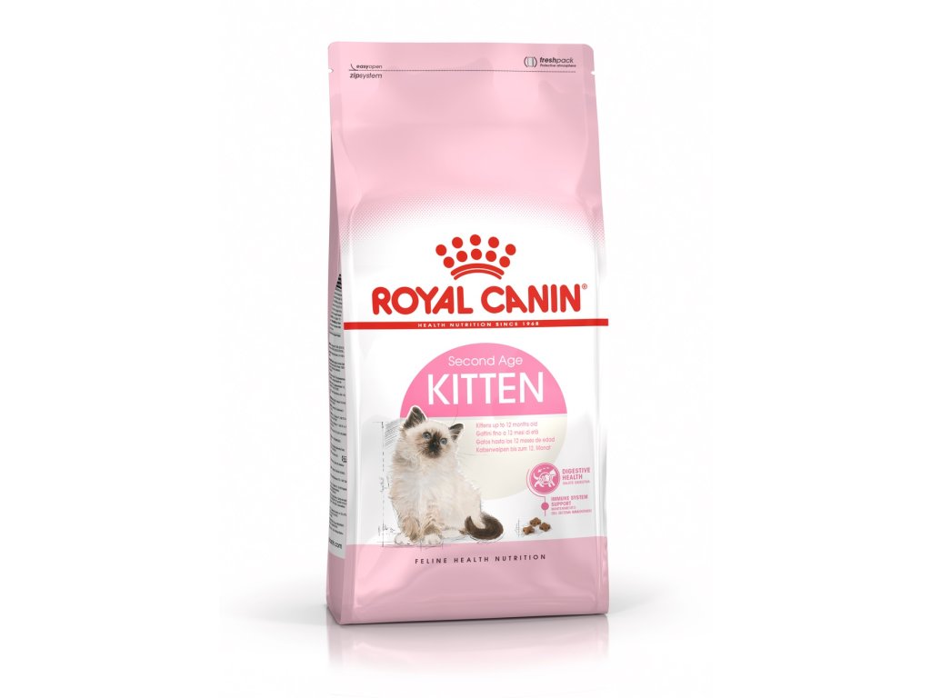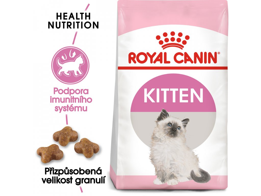 Druhá fáze růstu je pro vaše kotě klíčová, protože jeho imunitní systém se stále postupně vyvíjí. Krmivo podporuje přirozenou obranyschopnost vašeho kotěte hlavně díky patentovanému komplexu antioxidantů, do kterého patří i velmi prospěšný vitamín E. Protože je trávicí systém vašeho kotěte v citlivé fázi vývoje, krmivo ROYAL CANIN® Kitten je snadno stravitelné díky bílkovinám, které jsou stravitelné minimálně z 90 % (označované anglickou zkratkou L.I.P.) a prebiotikům, například FOS. Růst vaše kotěte je v tomto období poměrně intenzivní a prochází mnoha fyzickými změnami. Granule obsahují upravený obsah bílkovin a vyrovnaný obsah vitamínů a minerálů, například vitamínu D a vápníku. Vysoký energetický obsah přesně odpovídá zvýšené aktivitě vašeho kotěte.