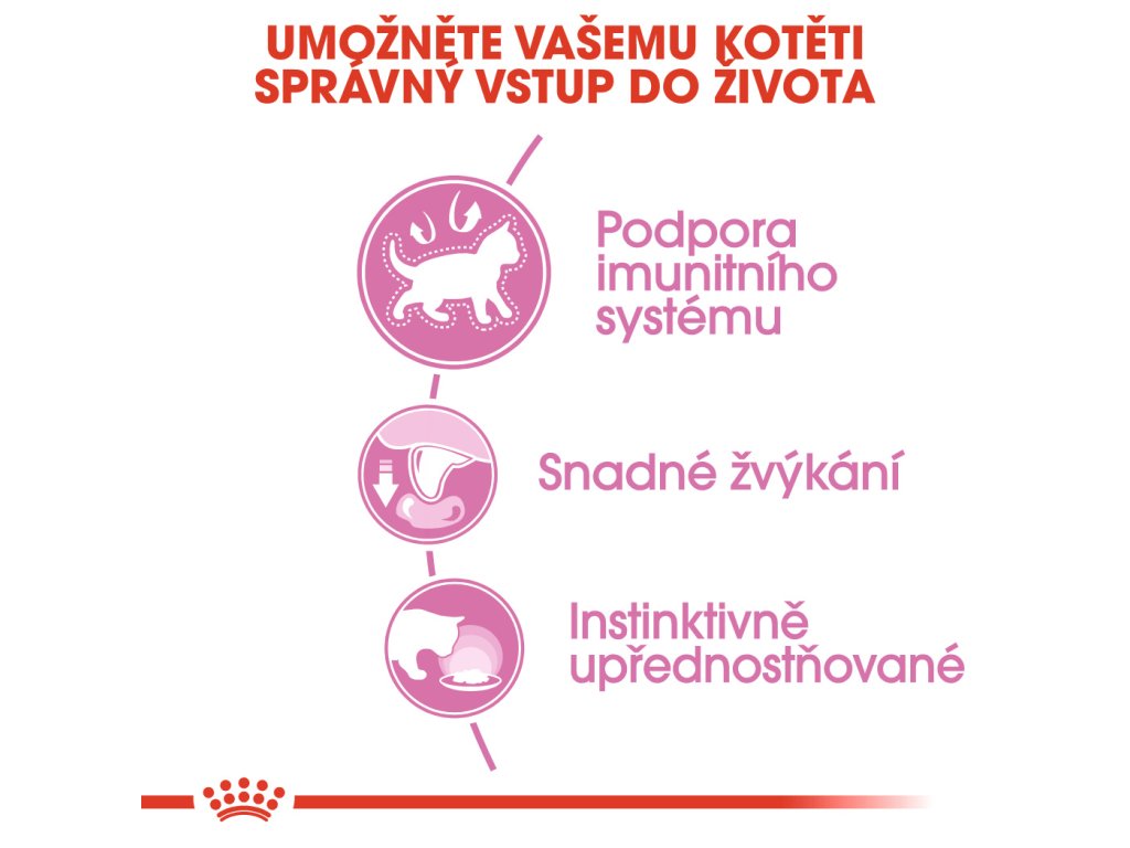 Když jsou koťata odstavována od mateřského mléka, všechna společně preferují jistý nutriční profil, který je v pevné stravě přirozeně přitahuje. První sousta vašeho kotěte jsou velmi důležitá kvůli pozitivním asociacím s krmením. Pokud je krmivo velmi chutné a přirozeně preferované, kotě ho bude přijímat raději, a celý život bude mít správné návyky. Abyste svému kotěti mohli v krmivu podat všechny nezbytné živiny, dané krmivo mu musí chutnat. Pokud se živiny nedostanou do těla, je jedno, že jsou kvalitní. Proto je složení kapsičky s paštikou pro koťata ROYAL CANIN® Kitten Instinctive Loaf vytvořeno tak, aby odpovídalo optimálnímu nutričnímu profilu, který koťata přirozeně preferují. Pokud budete svému kotěti podávat krmivo, které má chuť, vůni i správnou texturu, celý život bude přirozeně přijímat zdravou stravu, kterou mu budete poskytovat.