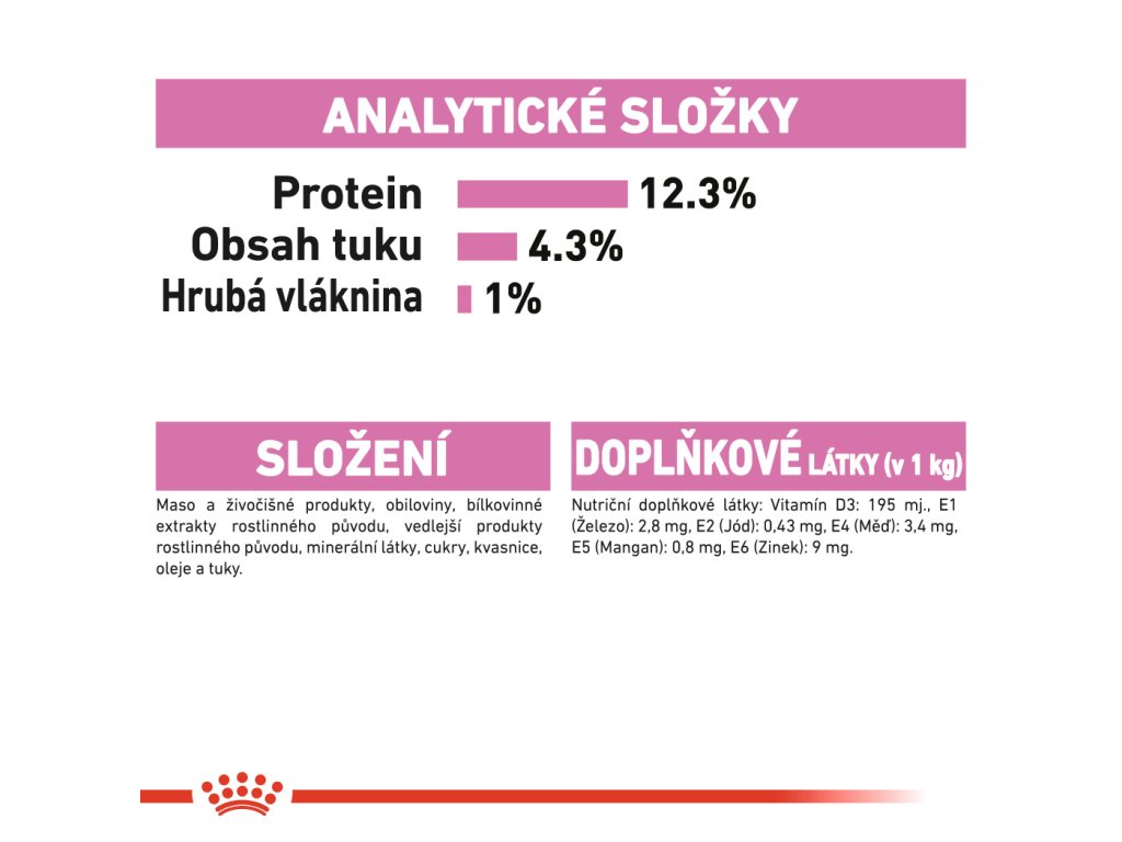 V druhé fázi růstu (4 – 12 měsíců) dále sílí kostra vašeho kotěte. Energetické požadavky má stále velmi vysoké, i když v porovnání s první fází růstu už klesly. Kapsička s paštikou pro koťata ROYAL CANIN® Kitten Instinctive Loaf poskytuje veškeré nezbytné živiny, které uspokojují vysoké energetické požadavky, podporují sílení kostí a také celkové zdraví vašeho kotěte. Je také důležité vědět, že v druhé fázi vývoje ještě není imunitní systém vašeho kotěte zcela vyvinutý. Krmivo ROYAL CANIN® Kitten Instinctive Loaf pomáhá posilovat přirozenou obranyschopnost kotěte komplexem antioxidantů, jako jsou například vitamín E, vitamín C, taurin a lutein.