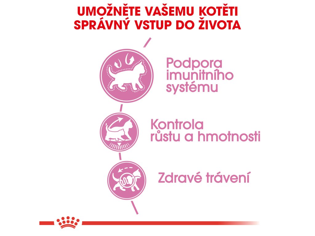 Když vaše kotě začíná růst a zvědavě prozkoumávat své okolí, je důležité si pamatovat, že jeho přirozená obranyschopnost ještě není zcela vyvinutá. Během tohoto období nových objevů mezi 6. a 12. měsícem bude imunitní systém vašeho kotěte potřebovat přidanou podporu, hlavně pokud bylo vykastrováno. Složení krmiva ROYAL CANIN® Kitten Sterilised je vytvořeno tak, aby uspokojovalo potřeby vašeho kotěte v tomto klíčovém období jeho vývoje. Obsažené živiny podporují přirozenou obranyschopnost vašeho kotěte i jeho celkové zdraví po kastraci.