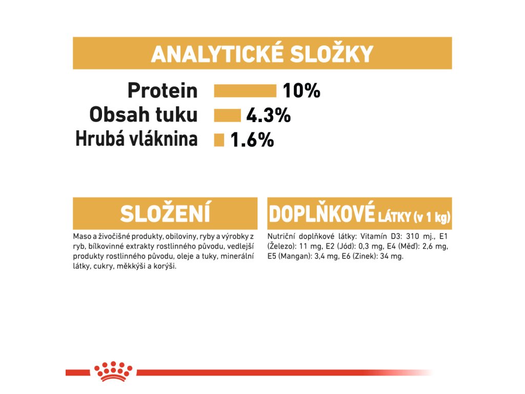 Mainská mývalí je tou největší domestikovanou kočkou na světě, ale jejich majitelé vědí, že jejich velká těla jsou osedlaná mírnou a velmi milou povahou. Jejich velká těla jsou zároveň velkou zátěží pro klouby. Kvůli svojí kostře a svalnatému tělu může mainská mývalí kočka vážit až třikrát tolik co běžná kočka. Složení kapsičky s paštikou ROYAL CANIN® Maine Coon Adult in Gravy je vytvořeno tak, aby uspokojovalo veškeré nutriční potřeby tohoto plemena. Můžete si být jistí, že nutriční potřeby vaší mainské mývalí kočky jsou pro nás stejně důležité jako pro vás.
