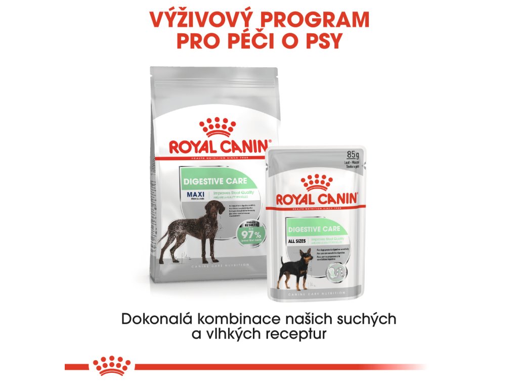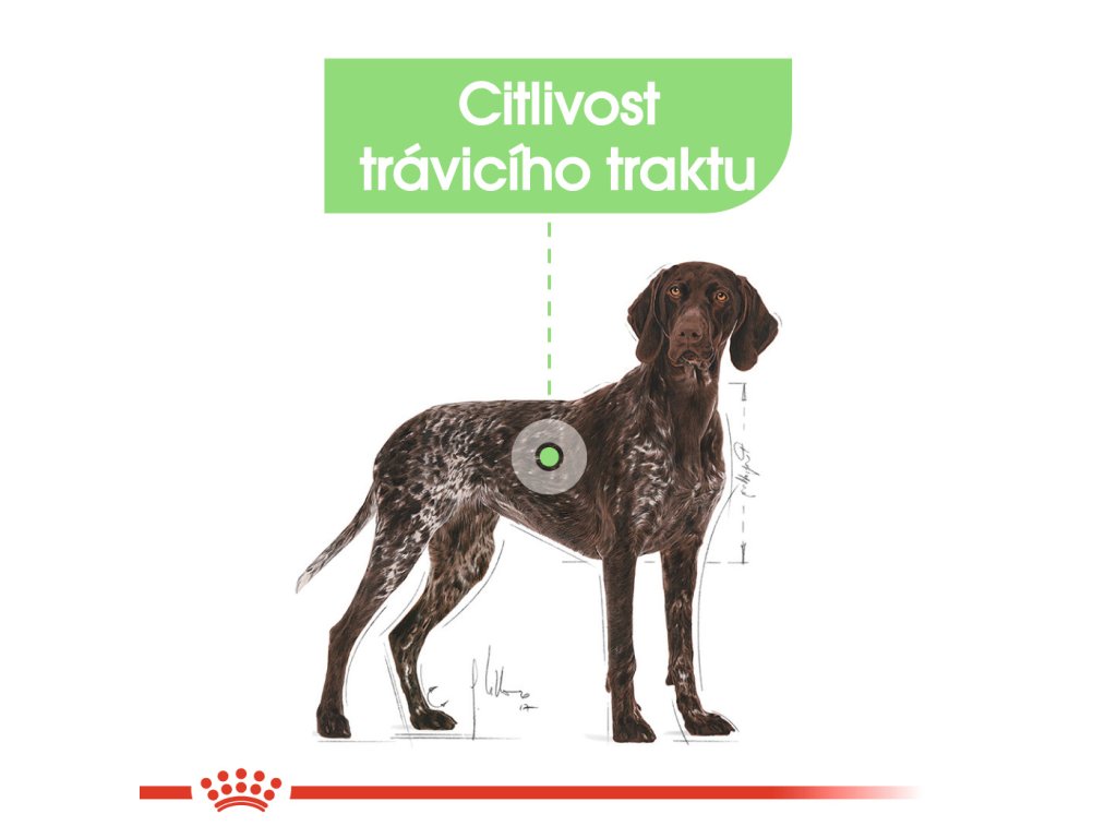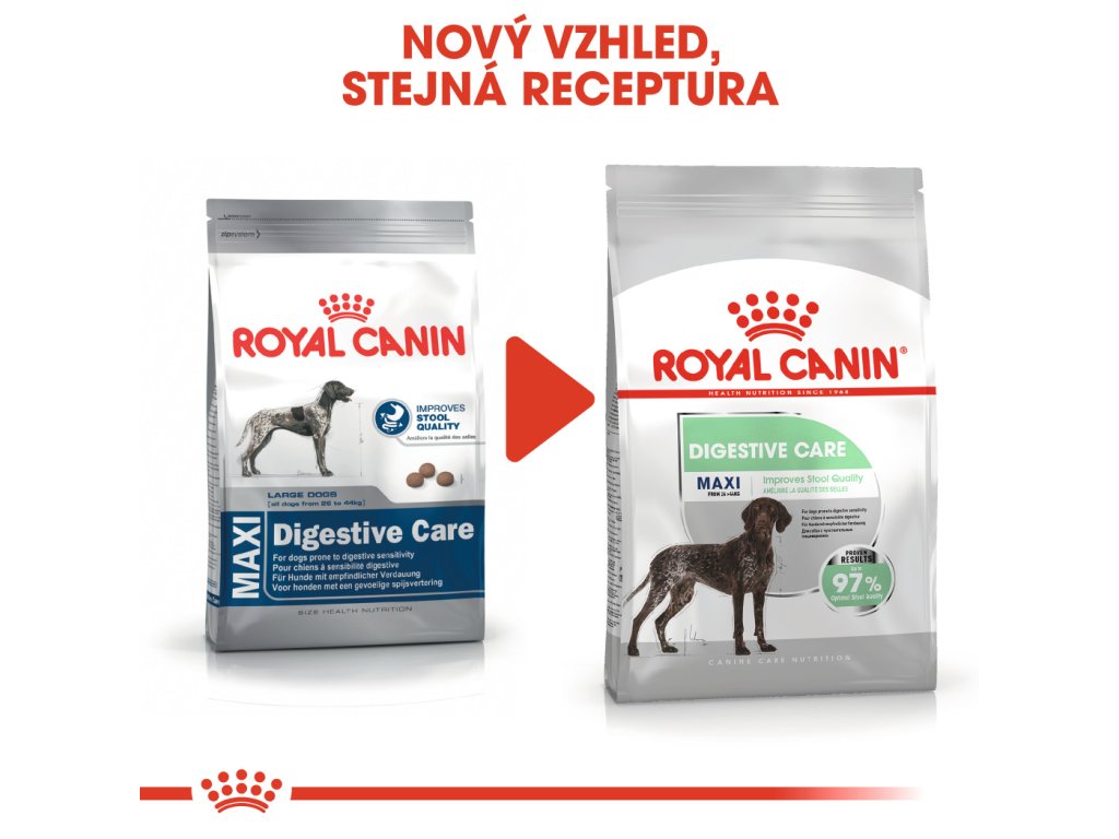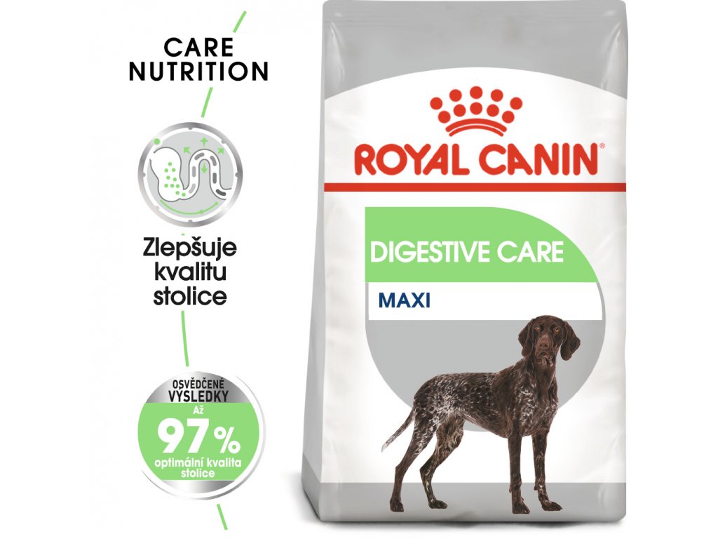 Krmivo ROYAL CANIN® Digestive Care Maxi je vhodné pro psy s hmotností od 26 do 44 kg, kteří jsou náchylní k citlivému zažívání.