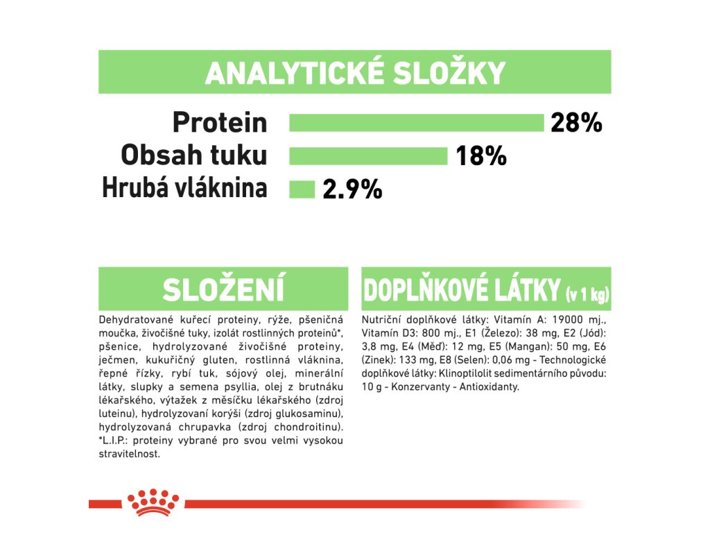 Krmivo ROYAL CANIN® Digestive Care Maxi je vhodné pro psy s hmotností od 26 do 44 kg, kteří jsou náchylní k citlivému zažívání. Vzhledem k tomu, že větší psi jsou náchylnější k fermentaci ve střevech, může být častým problémem měkká stolice. Granule pro psy obsahují vysoce kvalitní živiny, jejichž vyváženost zajišťuje pohodu střev a lepší vstřebávání. Složení obsahuje směs prebiotik a vlákniny pro vyváženou střevní mikroflóru a podporu optimální kvality stolice. Krmivo je speciální v tom, že využívá technologie inteligentní přípravy krmiva. Ta zajišťuje, aby byly živiny lépe stravitelné. Tato vysoká stravitelnost je potvrzena pravidelnými a přísnými kontrolami kvality. Prebiotika jsou nezbytné živiny, které živí dobré bakterie ve střevech vašeho psa. Tyto bakterie jsou známé také jako zdravá střevní mikroflóra a hrají důležitou roli při podpoře zdraví střev i celkového zdraví vašeho psa.