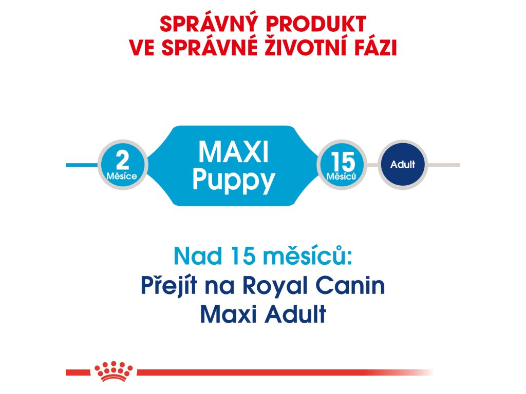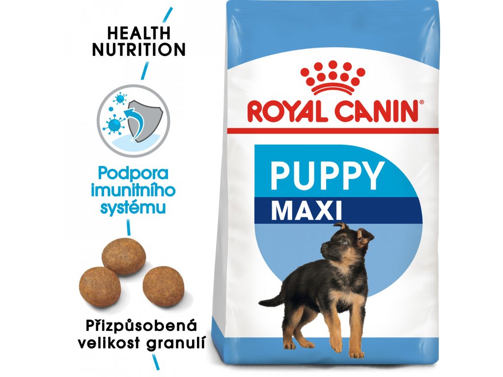 Royal Canin Maxi Puppy je kompletní super prémiové krmivo pro štěňata (2 - 15 měsíců věku) velkých plemen (26 - 44 kg váhy v dospělosti).