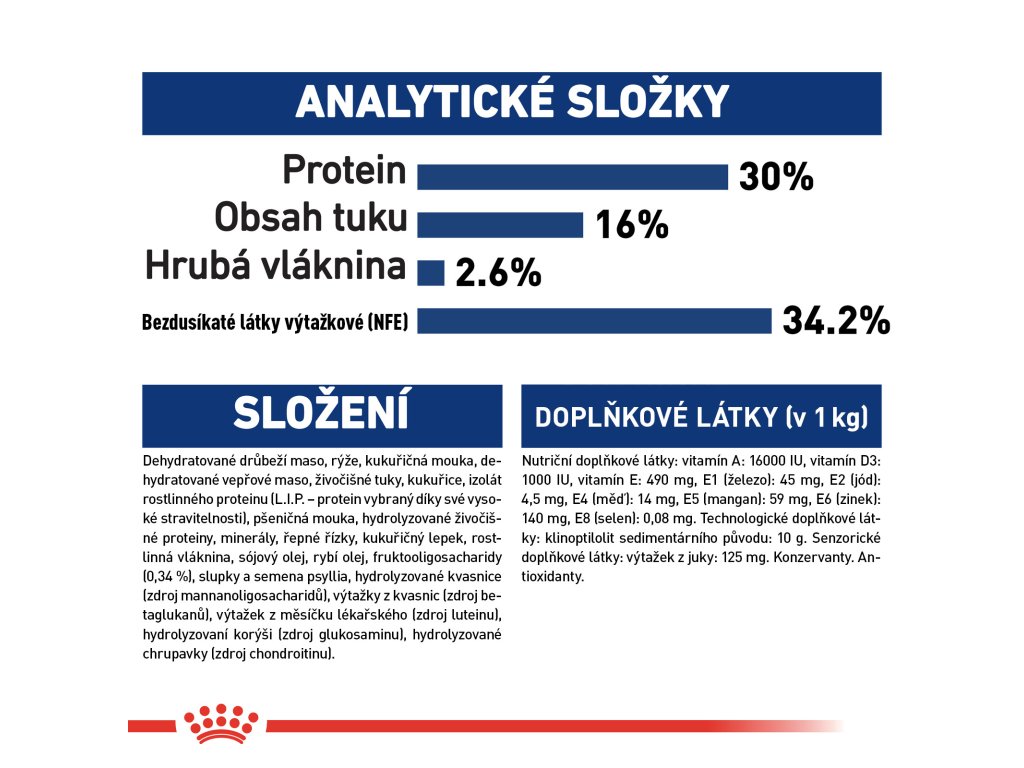 Granule ROYAL CANIN® Maxi Puppy obsahuje patentovaný komplex antioxidantů, včetně velmi prospěšného vitamínu E, který podporuje přirozenou obranyschopnost vašeho štěněte, když je jeho imunitní systém stále ve vývinu. Kombinace živin jako jsou vysoce stravitelné bílkoviny (L.I.P.) a prebiotika (FOS) udržuje trávení vašeho štěněte zdravé. Tyto živiny navíc udržují střevní mikroflóru v rovnováze, což vede k dobré stolici. Velká štěňata rostou dlouho, a proto potřebují výživu, která s tímto faktem počítá. Krmivo dále obsahuje střední obsah energie, aby uspokojilo energetické nároky vašeho štěněte.