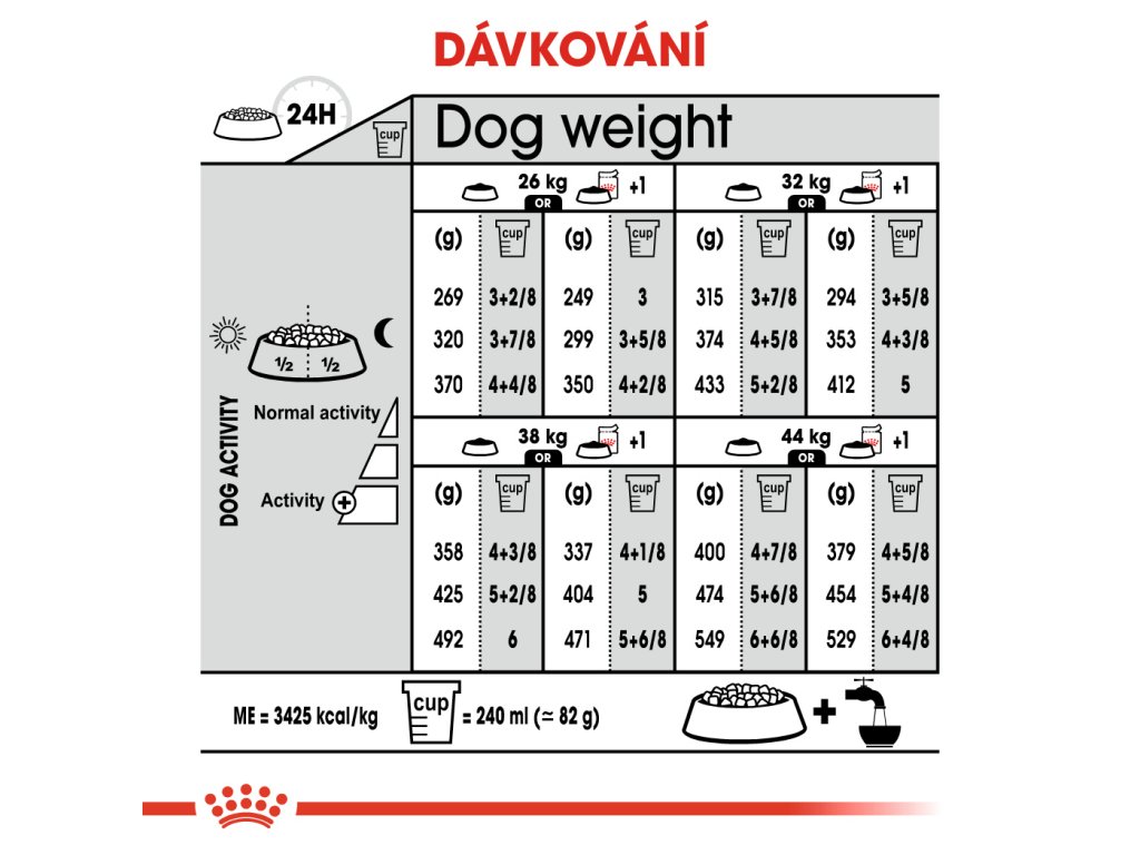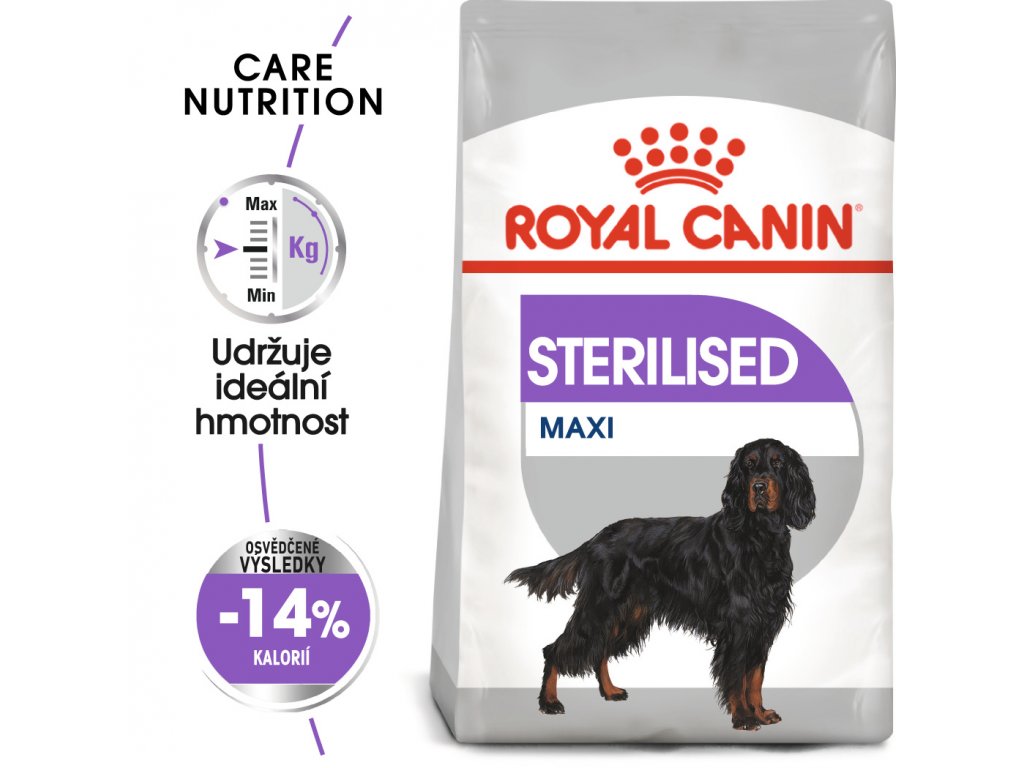 Lahodné krmivo ROYAL CANIN® Sterilised Maxi vašeho psa zasytí, aniž by přibíral na váze. Je vhodné pro kastrované psy a feny s hmotností od 26 do 44 kg. Společnost Royal Canin ví, jak jsou bílkoviny důležité. Proto používá pouze ty nejkvalitnější z nich a přizpůsobujeme je tak, aby vyhovovaly přesným potřebám vašeho psa. Krmivo je bohaté na vysoce stravitelné bílkoviny, které zajišťují, že si váš pes udrží svalovou hmotu při sníženém příjmu tuků a kalorií. Krmivo navíc obsahuje nižší podíl tuků, aby si váš pes udržel ideální hmotnost a vyvaroval se zdravotních komplikací, které jsou spojené s nadváhou. Kombinace vlákniny, která je v krmivu obsažena, uspokojí hlad a omezí žebrání tím, že se váš pes bude cítit sytý.