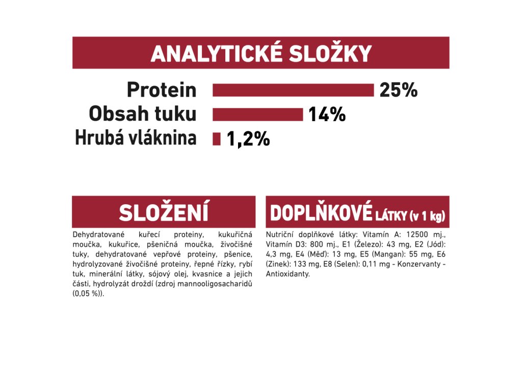 Imunitní systém vašeho psa je teď už plně vyvinutý, ale to neznamená, že mu neprospěje podpora navíc z krmiva. Proto obsahují granule exkluzivní komplex antioxidantů, ale také živiny jako jsou mannooligosacharidy, které podporují přirozenou obranyschopnost vašeho psa, díky čemuž si může udržet zdravý životní styl. Právě kvůli exkluzivnímu složení krmiva, které obsahuje velmi kvalitní bílkoviny, je podpořena i optimální stravitelnost, díky které může váš pes efektivně absorbovat živiny. Zdravé trávení také navíc podporuje vyvážený obsah vlákniny.