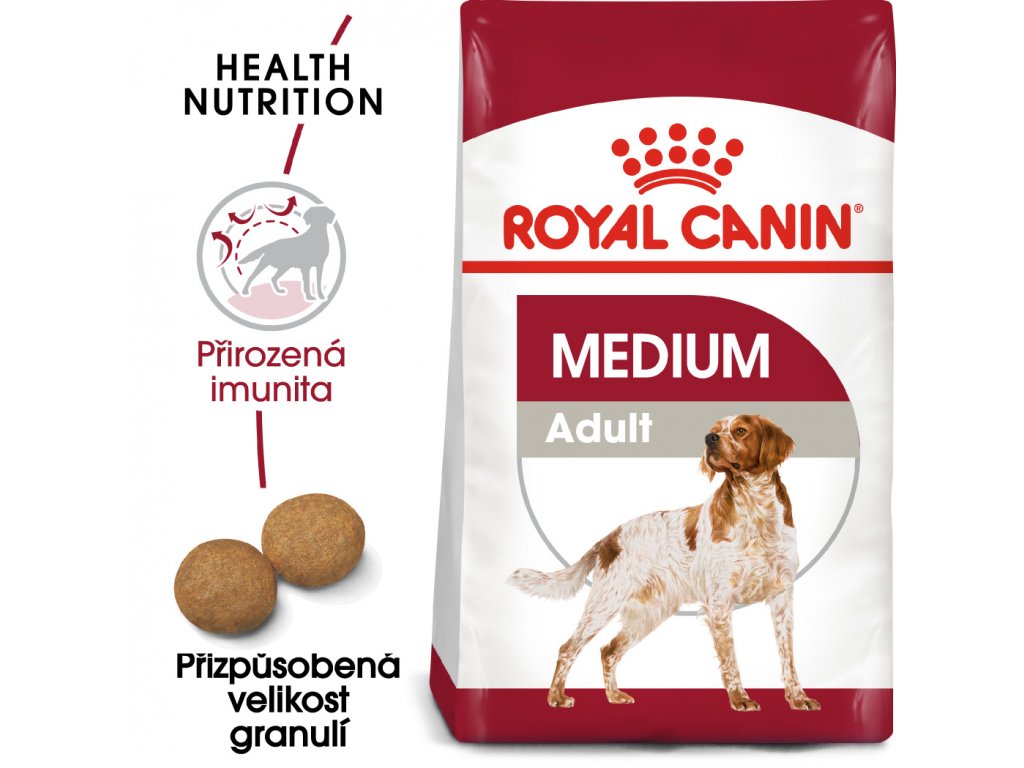 Royal Canin Medium Adult je kompletní super prémiové krmivo pro dospělé psi (od 12 měsíců do 7 let věku) středních plemen (11 - 25 kg váhy v dospělosti).