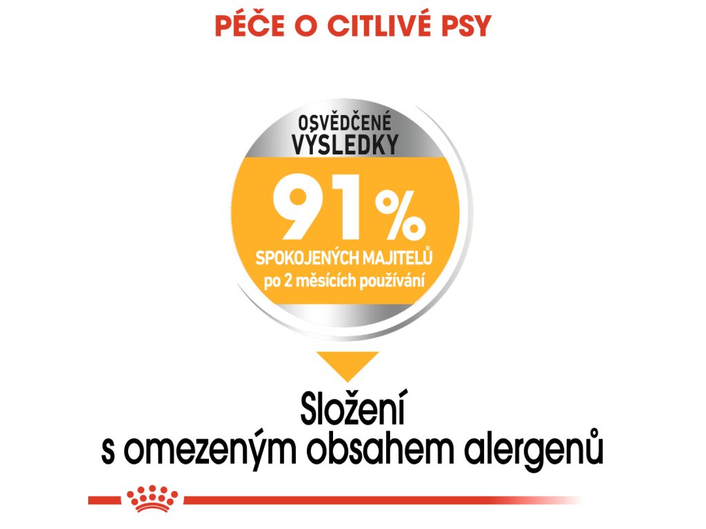 Krmivo ROYAL CANIN® Dermacomfort Mini se sníženým obsahem alergenů je pečlivě připravováno za použití speciálně vybrané řady bílkovin.