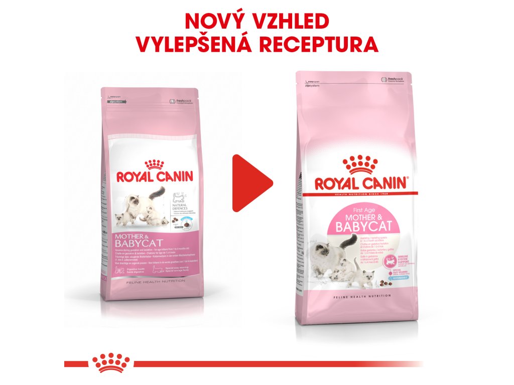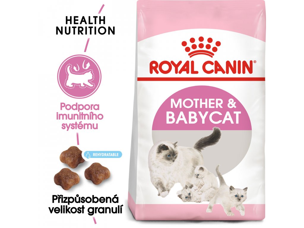 Mezi 4. a 12. týdnem po porodu imunita získaná od matky kolostrem (prvním mlékem bohatým na ochranné protilátky) postupně oslabuje. Krmivo obsahuje patentovaný komplex antioxidantů, včetně vitamínu E, který podporuje přirozenou obranyschopnost kotěte, když se jeho imunitní systém ještě stále vyvíjí. Jak koťata postupně ztrácí schopnost trávit laktózu, je potřeba začít je odstavovat a přejít na pevnou stravu. Granule krmiva ROYAL CANIN® Mother & Babycat jsou speciální v tom, že se dají snadno rehydratovat na kaši, a tak usnadňují toto období přechodu.