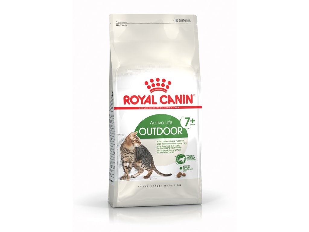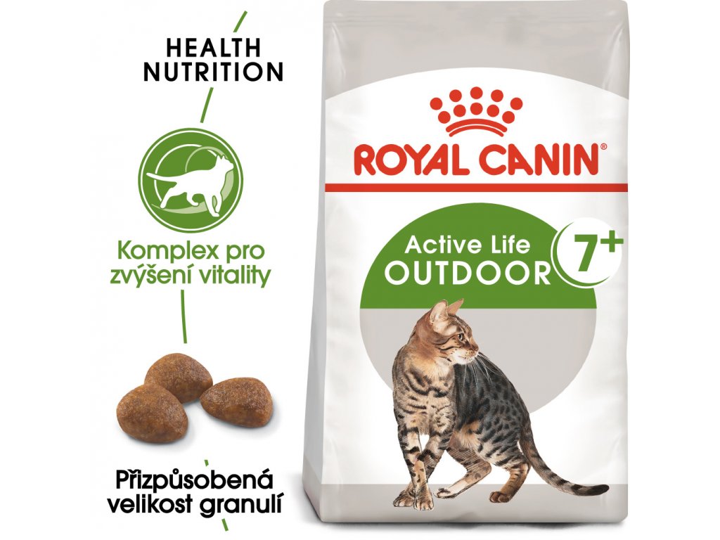 Royal Canin Outdoor 7+ je kompletní superprémiové krmivo pro dospělé kočky (7 – 12 let) s častým pohybem venku a normální aktivitou.