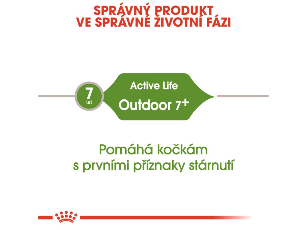 Pokud vaše aktivní dospělá kočka tráví hodně času venku, je důležité dávat jí krmivo, které obsahuje živiny potřebné pro její optimální zdraví. Složení krmiva ROYAL CANIN® Outdoor 7+ je vytvořeno tak, aby uspokojovalo veškeré nutriční potřeby starších venkovních koček. Je vhodné pro aktivní kočky nad 7 let a obsahuje exkluzivní komplex pro podporu vitality, který pomáhá vaší kočce čelit prvním příznakům stárnutí.