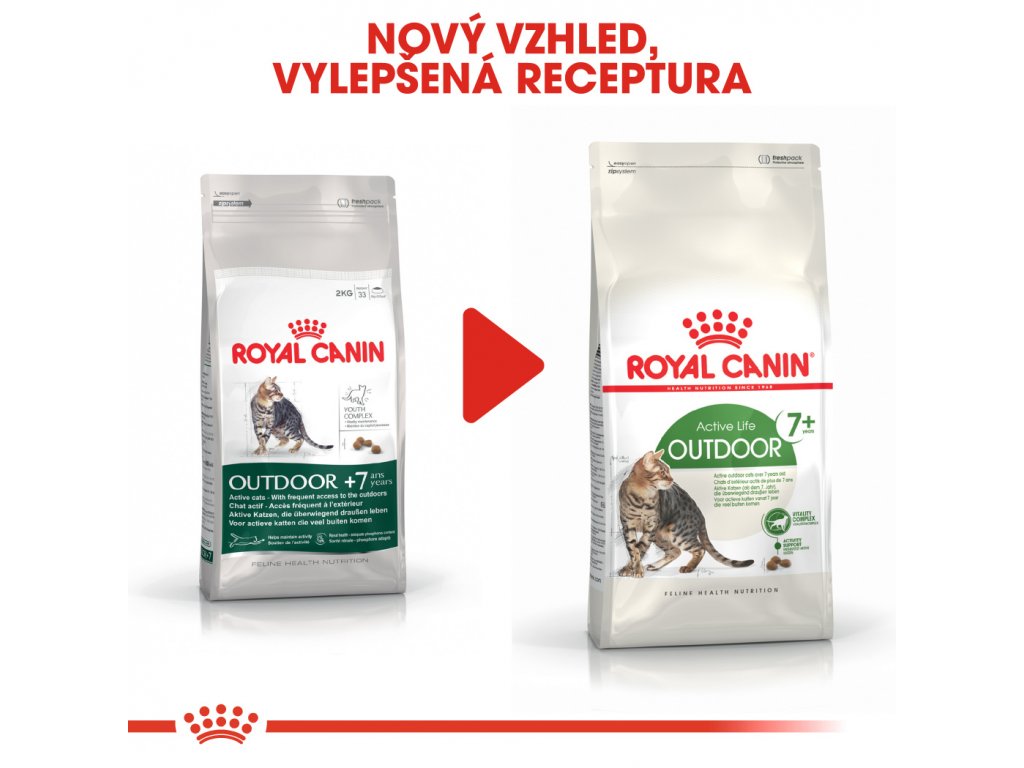 Toto krmivo je obohaceno o speciální živiny, jako jsou například polyfenoly ze zeleného čaje, vitamín C, EPA a DHA. Omega-3 mastné kyseliny, mezi které patří i EPA a DHA, podporují zdraví kloubů. Venkovní kočka běhá, skáče a šplhá. Krmivo ROYAL CANIN® Outdoor 7+ podporuje její klouby při těchto namáhavých činnostech. Venkovní kočky ve městě i na vesnici jsou přirozeně zvědavé a rády objevují. Krmivo má vysoký kalorický obsah, který uspokojuje energetické nároky aktivních koček, které milují být venku.