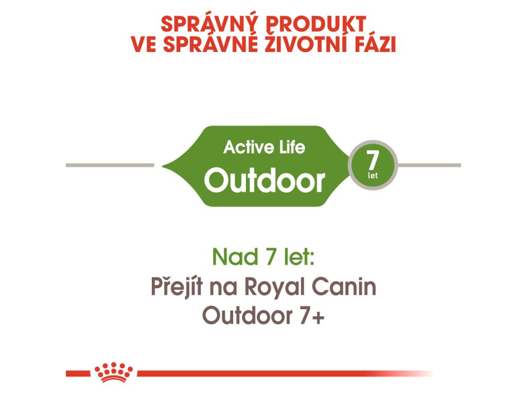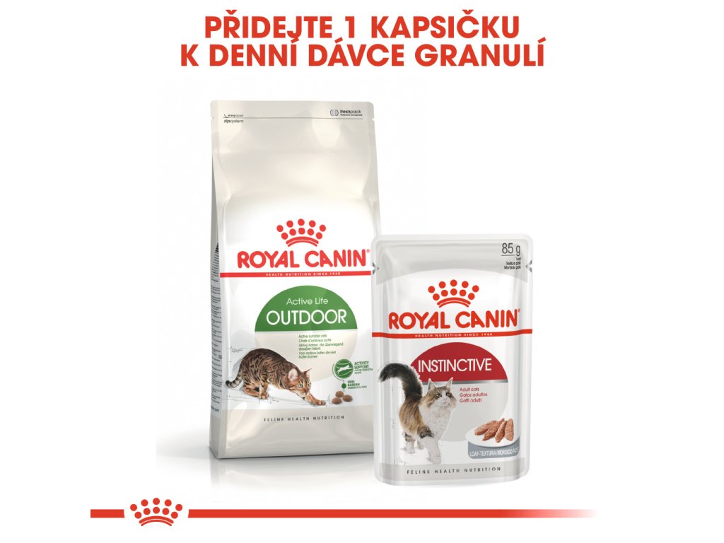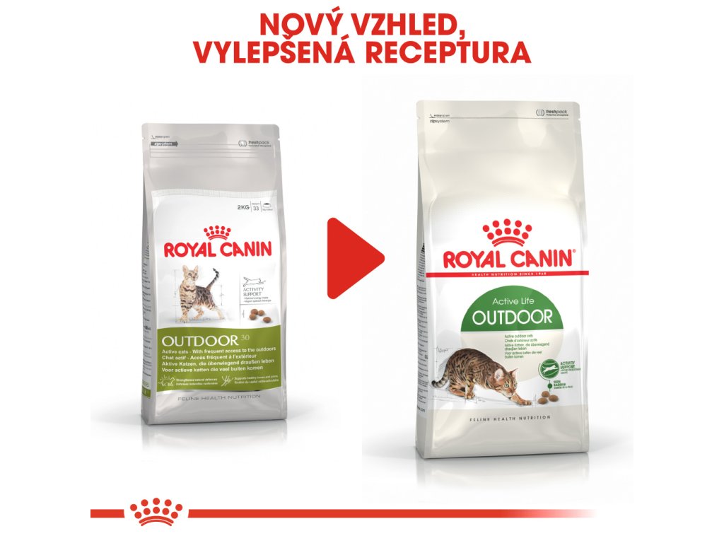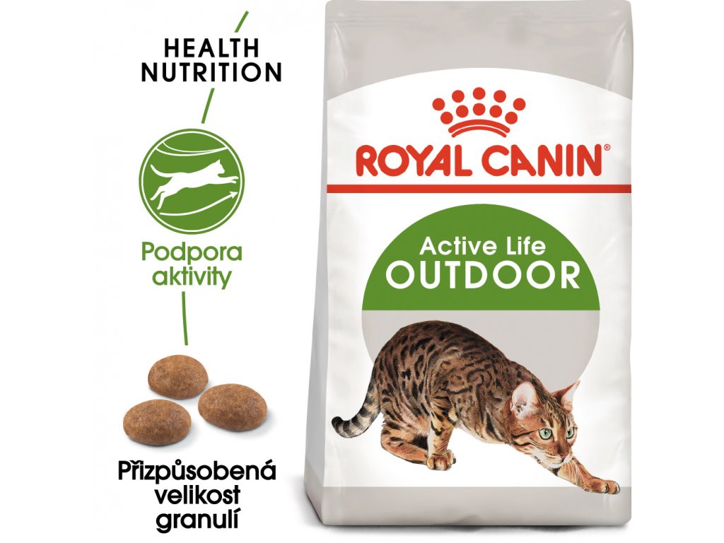 Složení krmiva ROYAL CANIN® Outdoor je vytvořeno tak, aby uspokojovalo potřeby venkovních koček, a obsahuje všechny živiny, které aktivní venkovní kočka vyžaduje. Krmivo má vysoký kalorický obsah, který uspokojuje nutriční nároky aktivních koček jako je ta vaše. Vysoký podíl energie také pomůže vaší kočce vyrovnat se s měnícím se počasím během roku. Granule jsou obohaceny o antioxidanty, které podporují imunitní systém vaší kočky. Přidaná prebiotika zase podporují rovnováhu střevní mikroflóry. Specifická kombinace živin podporuje funkci kožní bariéry, dobrý stav kůže i srsti a celkové zdraví vaší kočky.