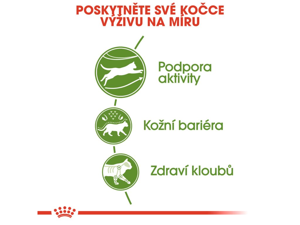 V městském i venkovském prostředí jsou kočky přirozeně zvědavé a vždy si najdou něco k prozkoumávání. Abyste podpořili svou kočku při náročných aktivitách jako je běhání, skákání a šplhání, dávejte jí krmivo ROYAL CANIN® Outdoor, které obsahuje kombinaci omega-3 mastných kyselin (EPA a DHA) podporující zdravé klouby.