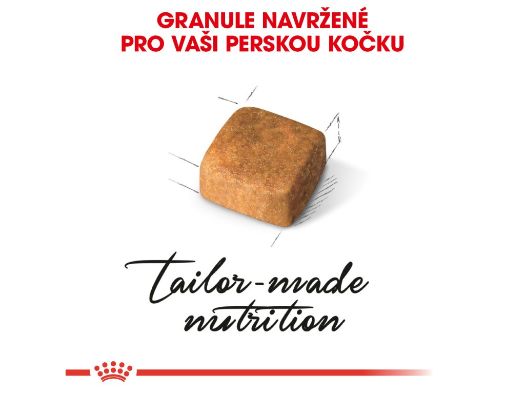 Protože má perské kotě širokou, ale krátkou hlavu, uchopuje krmivo jedinečným způsobem. Podle toho je granule krmiva ROYAL CANIN® Persian Kitten navržena. Má tvar malé kostky a měkkou strukturu, a tak se mu dobře uchopuje a žvýká.
