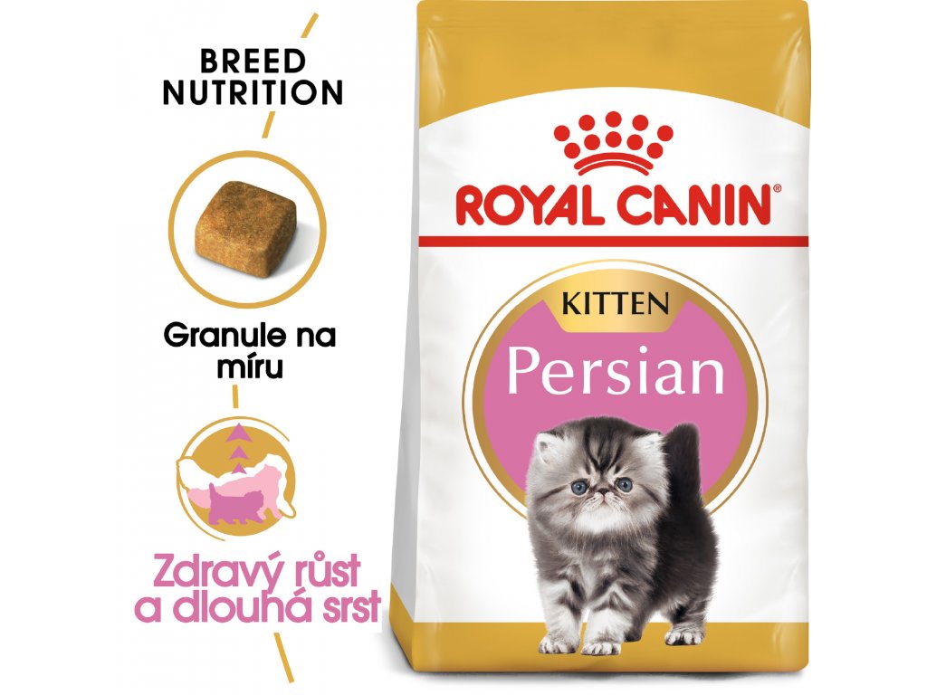 Perská koťata vykazují znaky charakteristické pro toto plemeno, které je nutné brát v potaz, když jim vybíráte potravu. Dobrý zdravotní stav a růst vašeho perského kotěte potřebuje speciální pozornost, hlavně když se jeho imunitní systém stále vyvíjí. Složení krmiva ROYAL CANIN® Persian Kitten je vytvořeno tak, aby uspokojovalo veškeré potřeby vašeho perského kotěte.